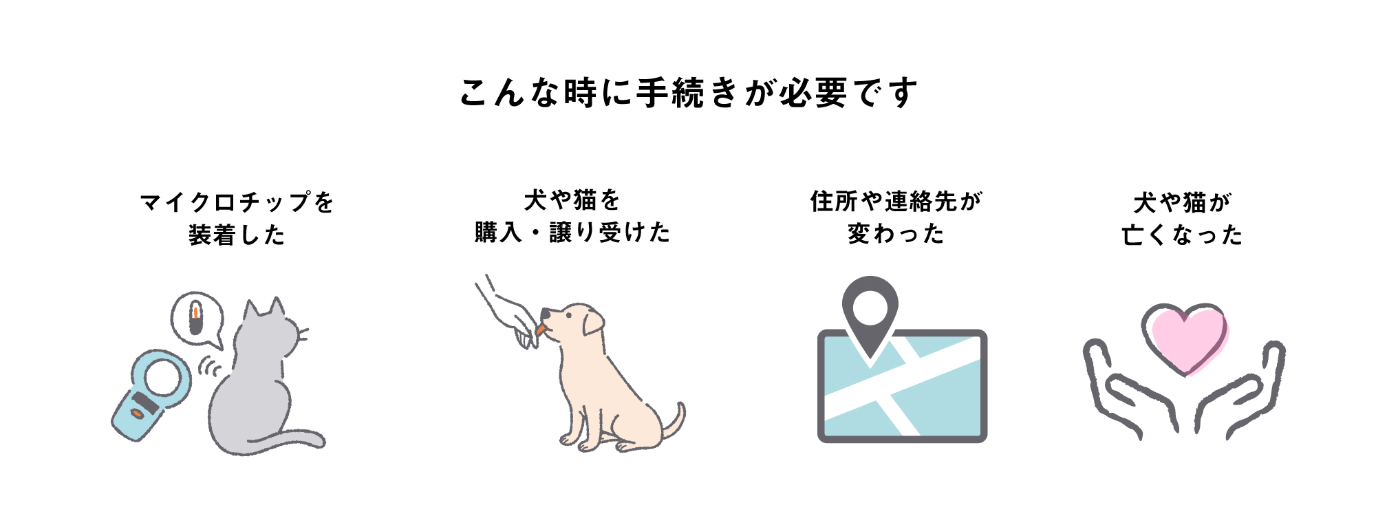 マイクロチップ情報の変更とは別に、窓口等での飼い主情報の変更が必要です!