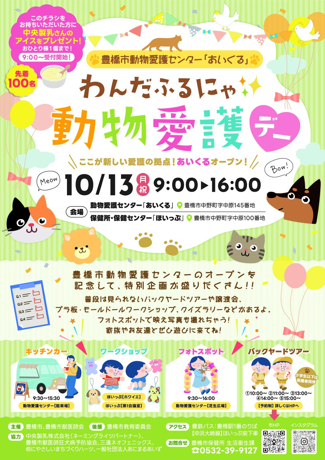 時間:9:00~16:00 場所 豊橋市動物愛護センター「あいくる」 豊橋市中野町字中原145番地 豊橋市保健所・保健センター「ほいっぷ」 豊橋市中野町字中原100番地 ~バックヤードツアーの参加者募集中~【募集期間 […]