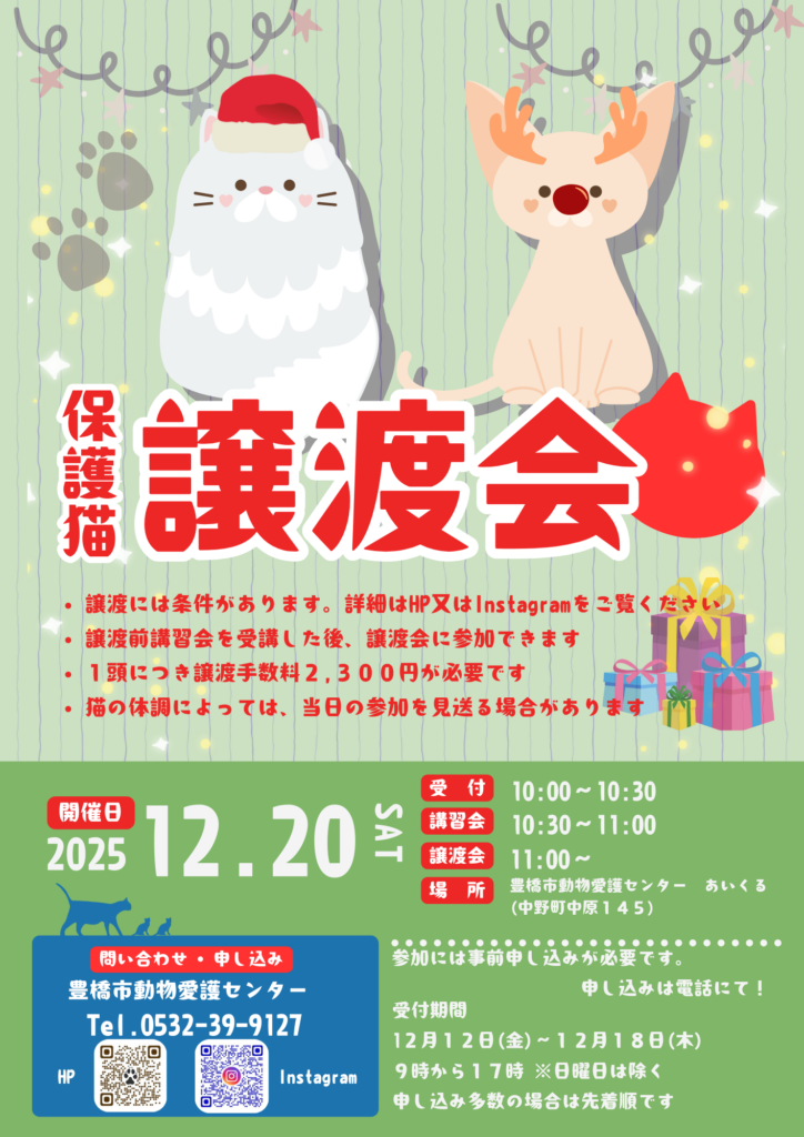 猫の譲渡前講習会&譲渡会のお知らせ(12月20日開催)