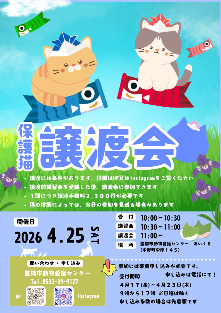 猫の譲渡前講習会&譲渡会のお知らせ(4月25日開催)